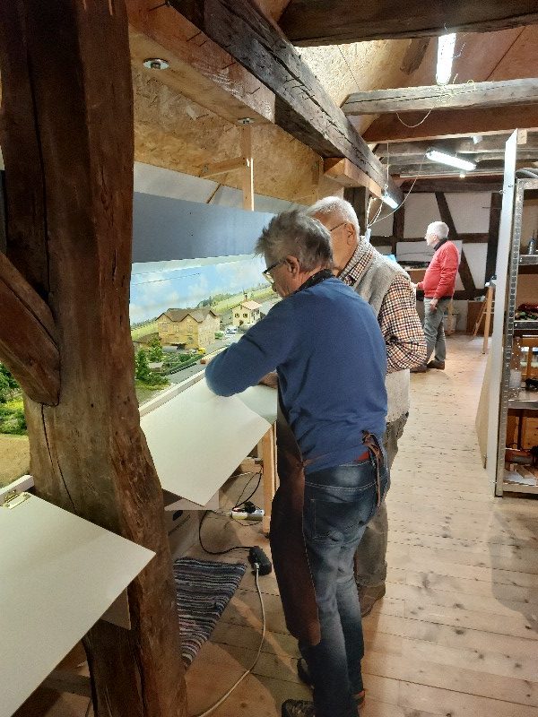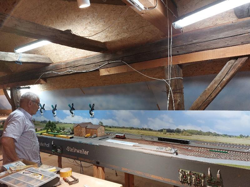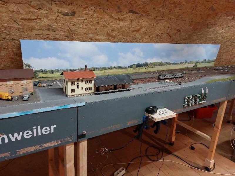 02.07.24 Der Hintergrund ist da und wird an den Modulen befestigt. Zusätzlich werden die vorhanden Platten als Himmel genutzt.