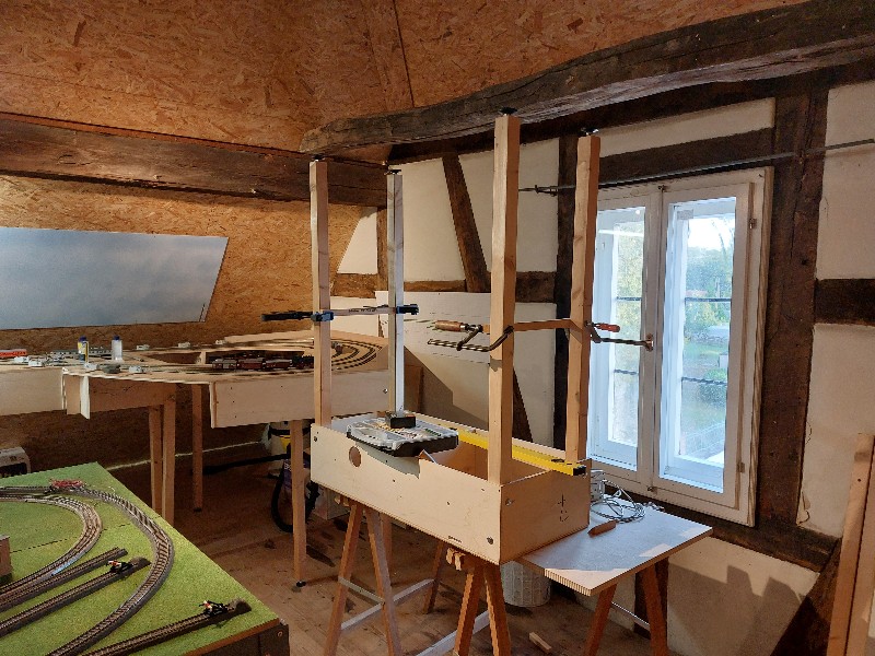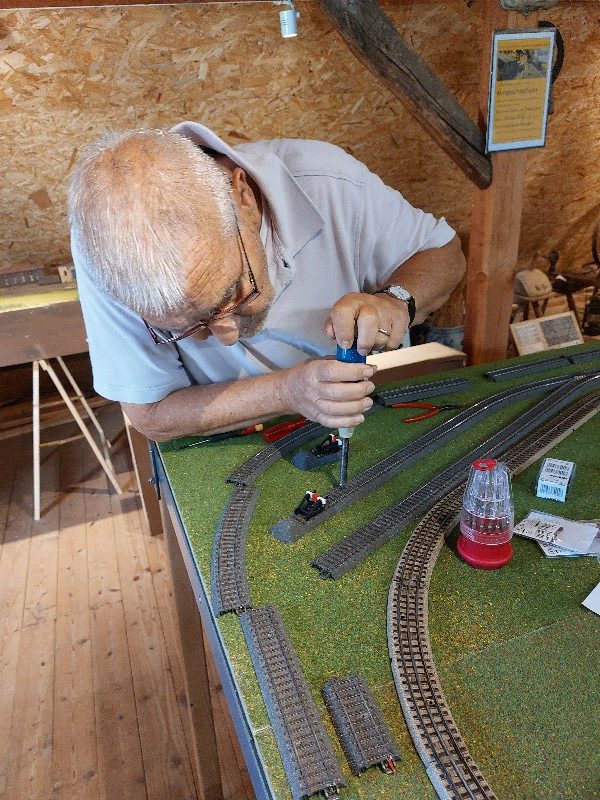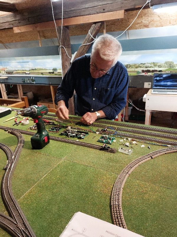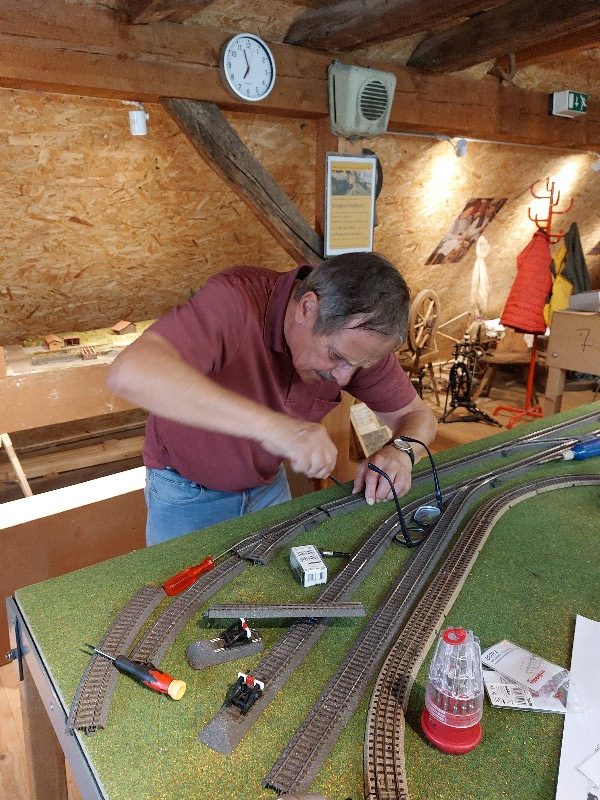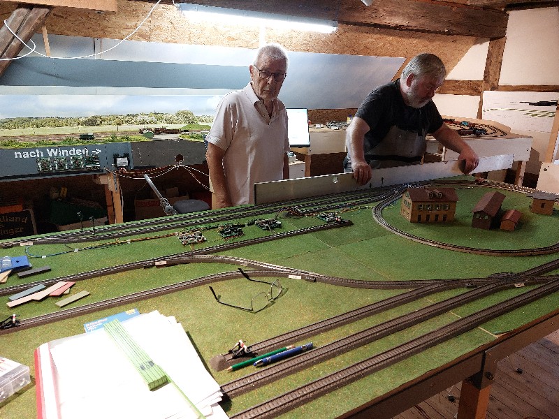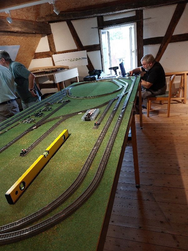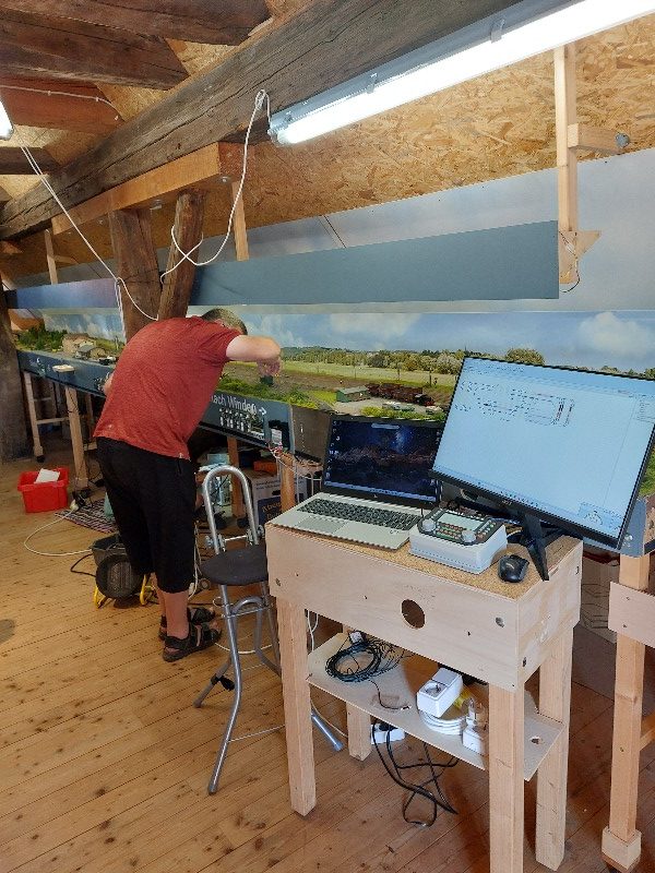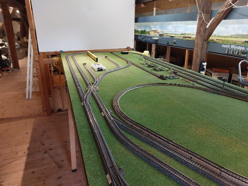 Arbeiten an der AC-Anlage. Geplant sind zusätzliche Rückmelder. Dazu muss aber ein Teil der Gleise demontiert werden und um Trennstellen einzubauen. Zusätzlich wurde auf de DC-Anlage ein Programiergleis eingebaut.