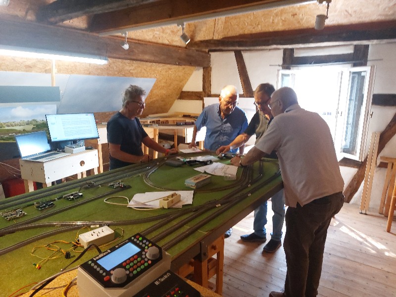 Die Verdrahtung der AC-Anlage wurde um die Rückmelder erweitert. Parallel arbeiteten einige MEC Kollegen an den Konsolen.