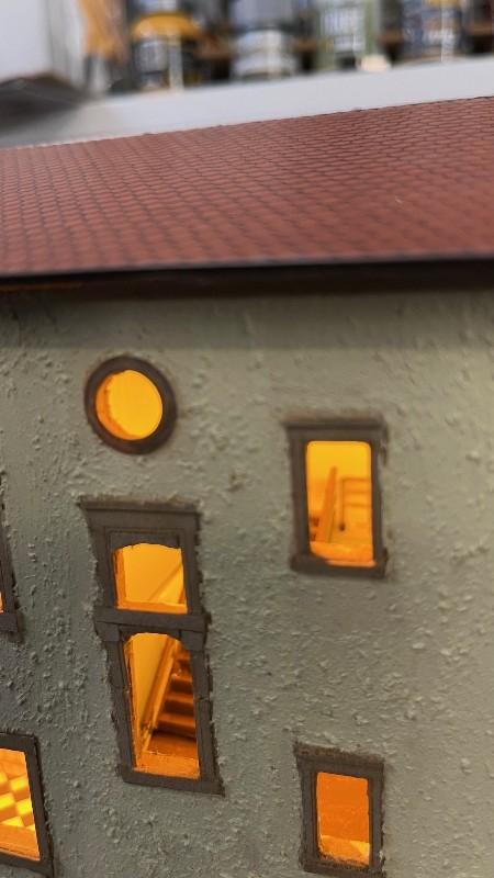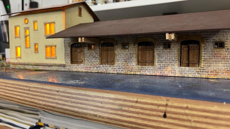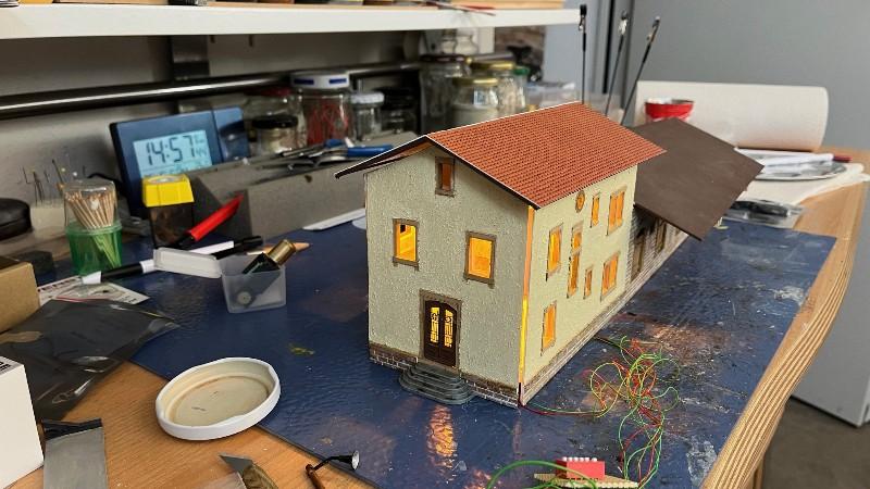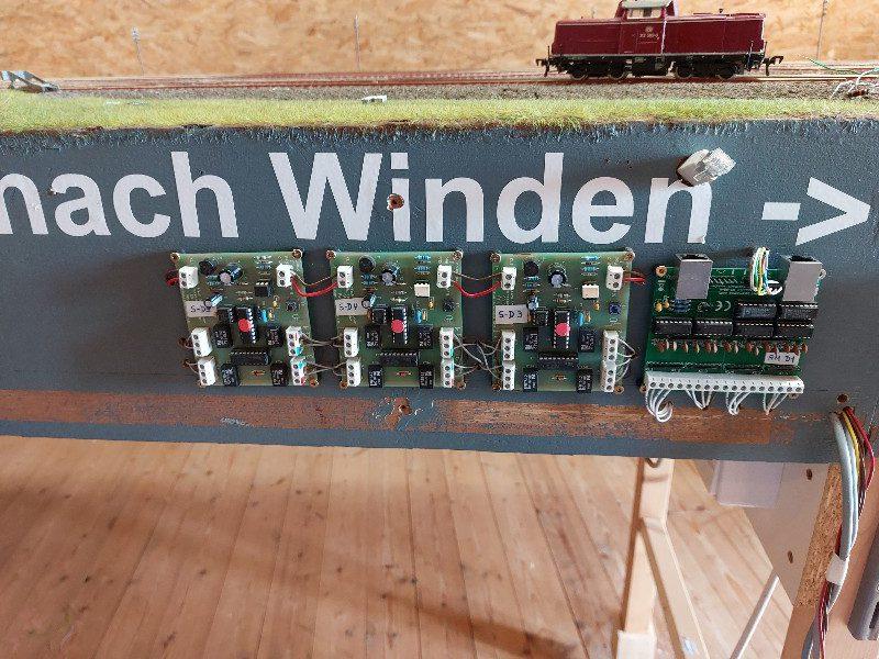 Arbeiten an der Bahnhofbeleuchtung. Die Beleuchtung kann jetzt auch über PC gesteuert werden. Fehlersuche W2.5. Die alte Elektrik der Klingenmünster Module wurde entfernt.
