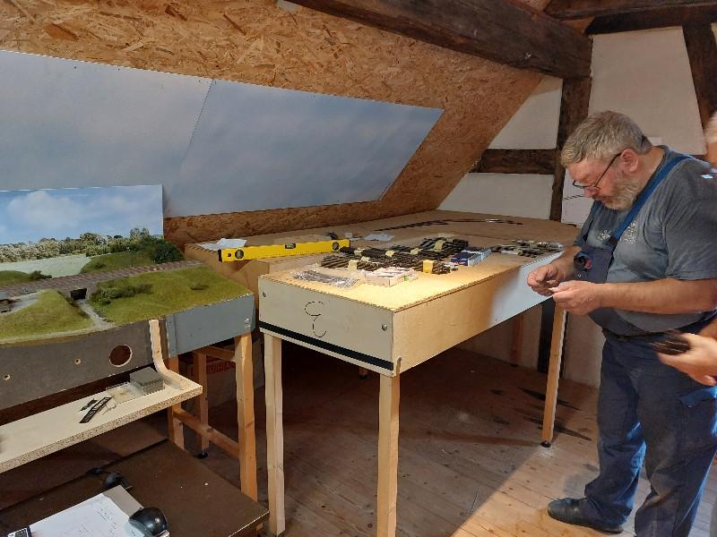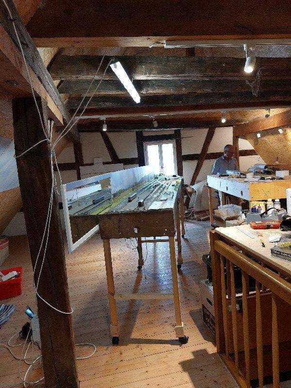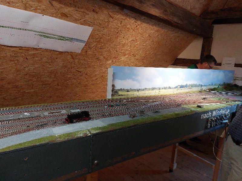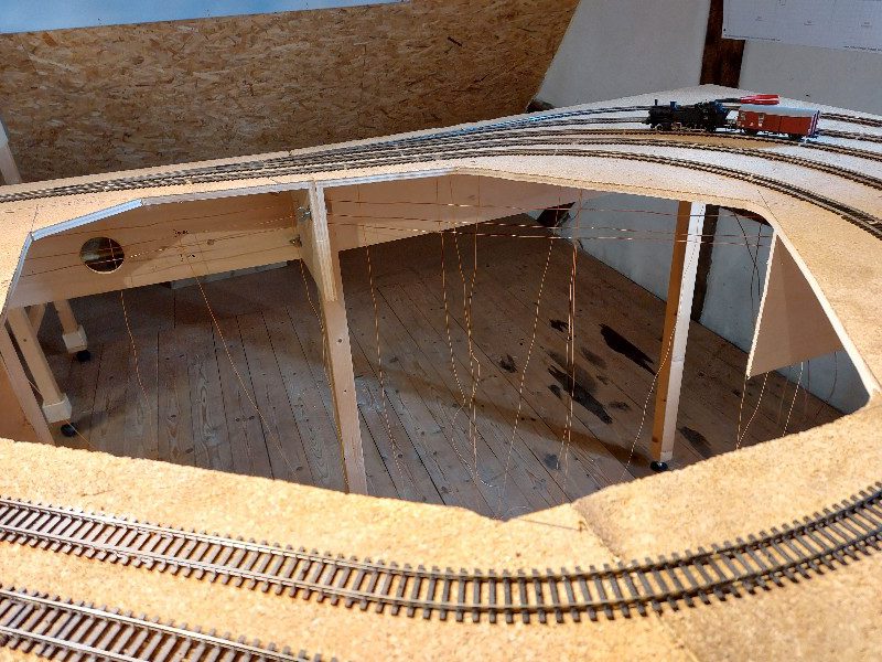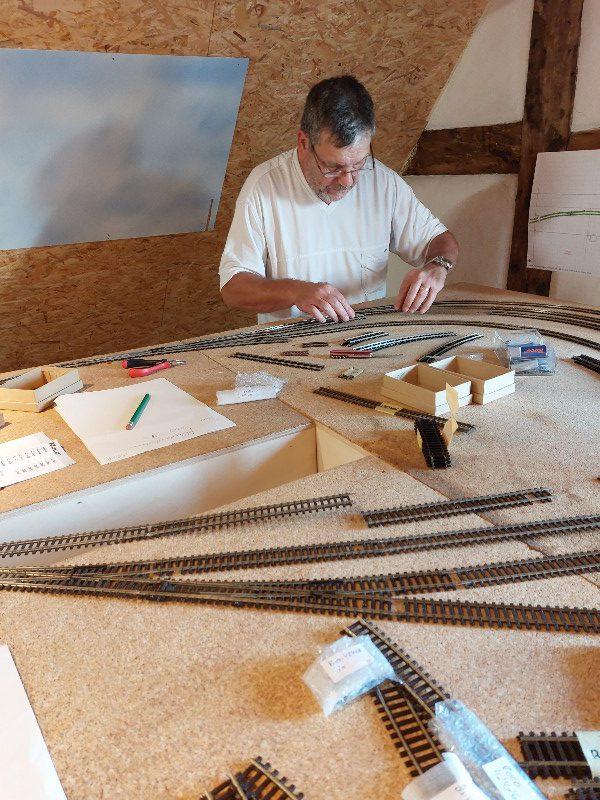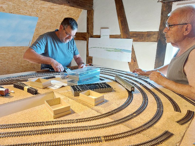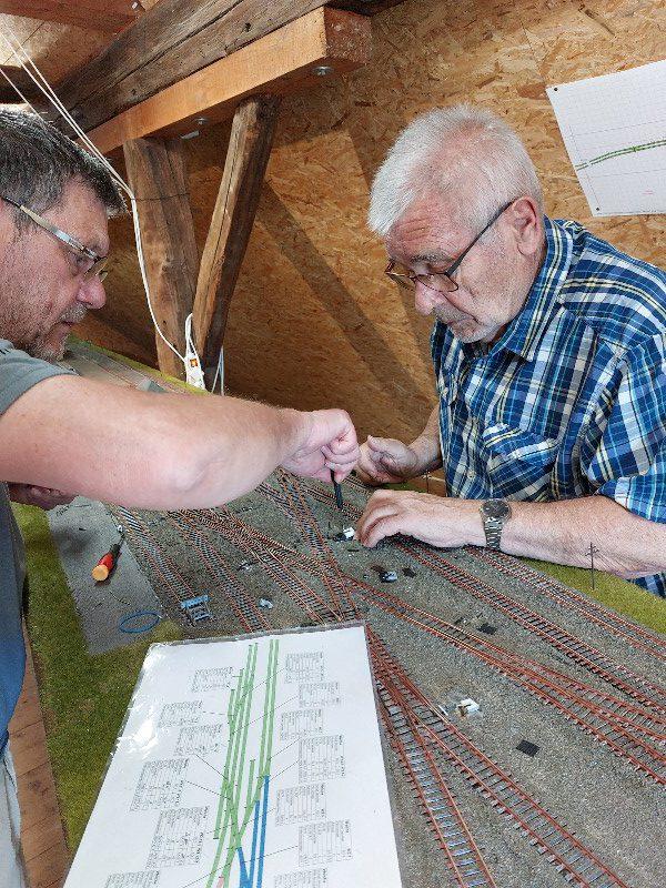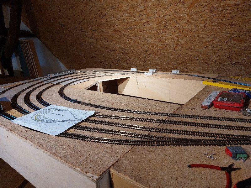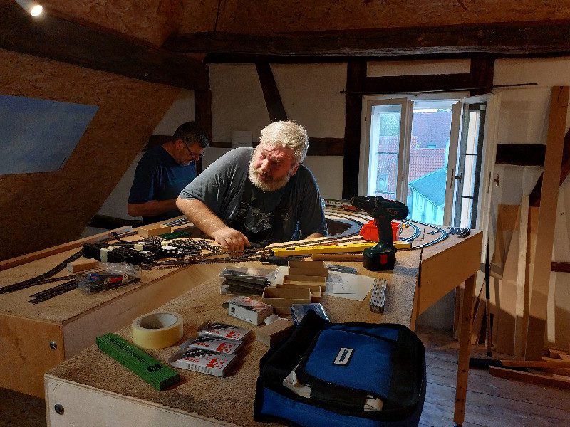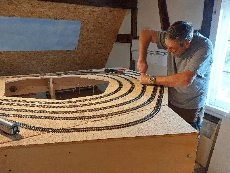 Arbeiten an der AC-Anlage. Geplant sind zusätzliche Rückmelder. Dazu muss aber ein Teil der Gleise demontiert werden und um Trennstellen einzubauen. Zusätzlich wurde auf de DC-Anlage ein Programiergleis eingebaut.