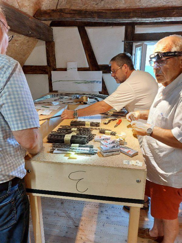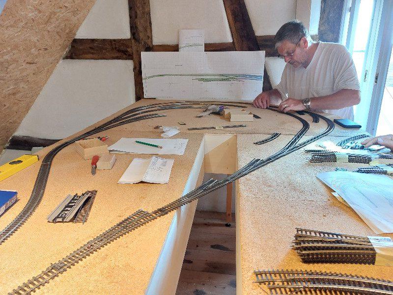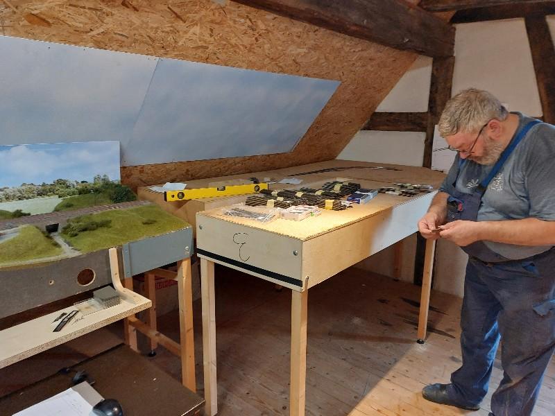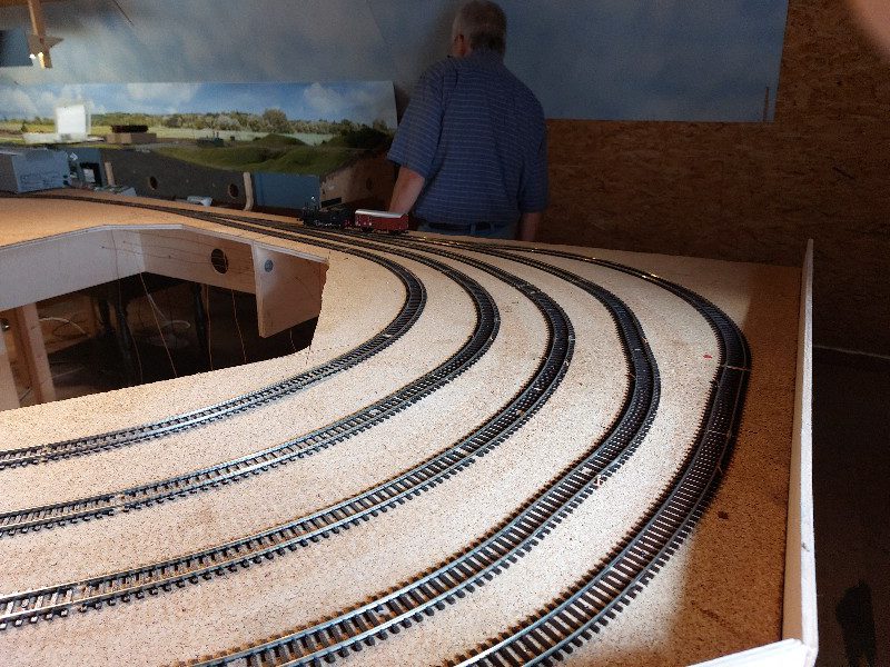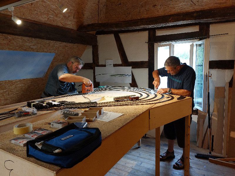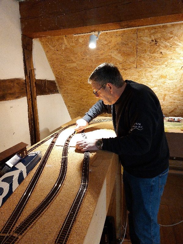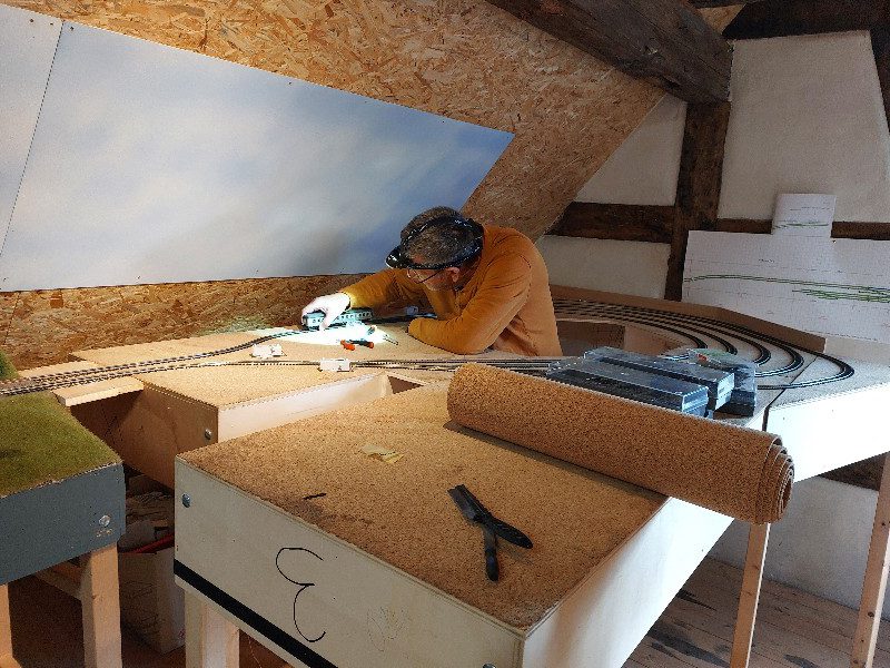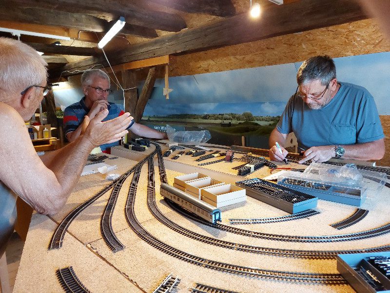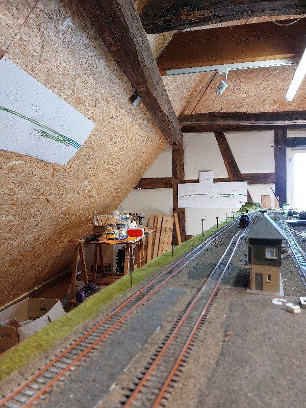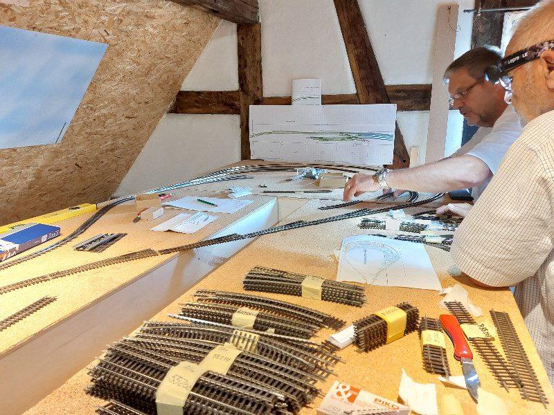 Arbeiten an der AC-Anlage. Geplant sind zusätzliche Rückmelder. Dazu muss aber ein Teil der Gleise demontiert werden und um Trennstellen einzubauen. Zusätzlich wurde auf de DC-Anlage ein Programiergleis eingebaut.