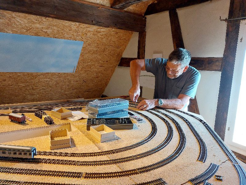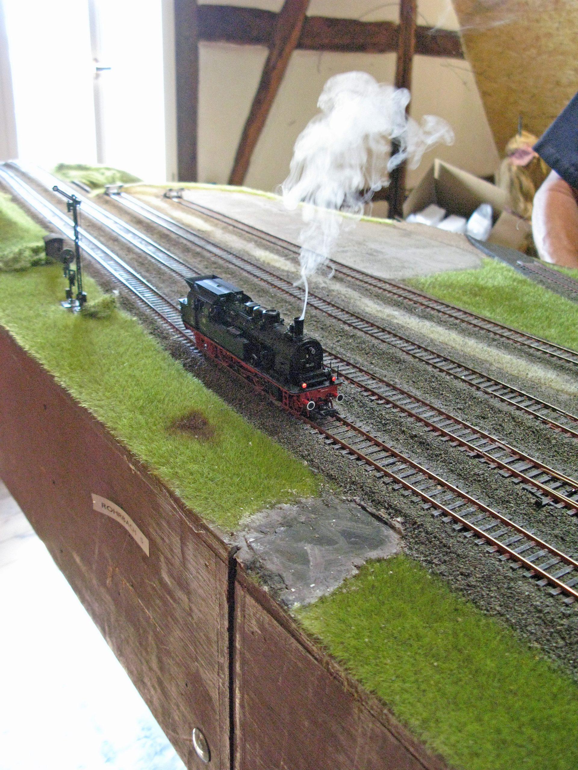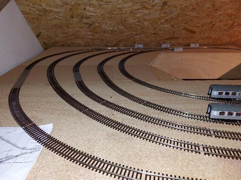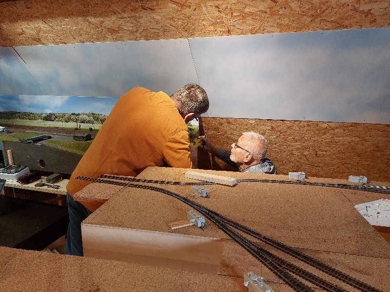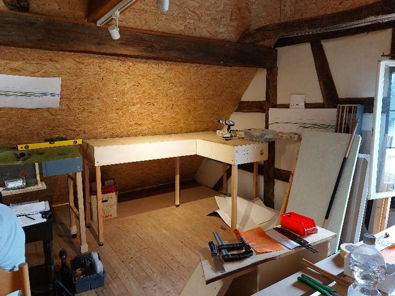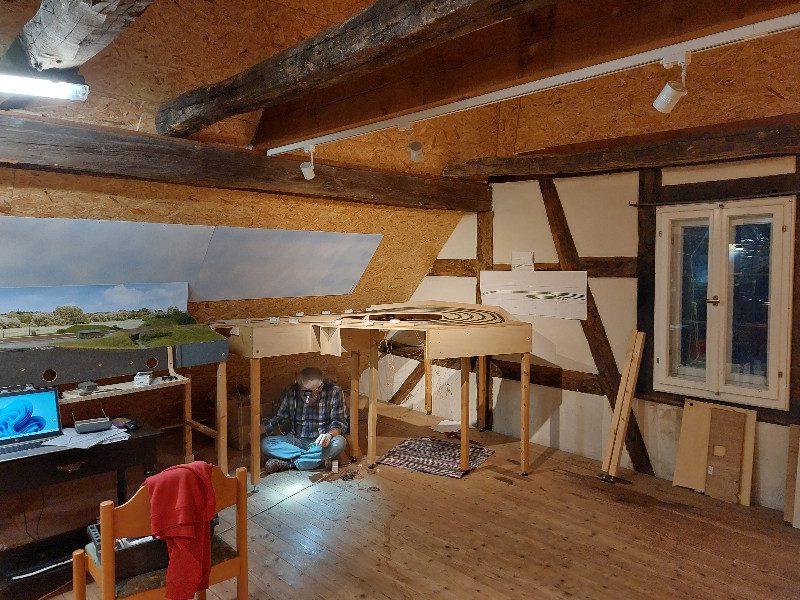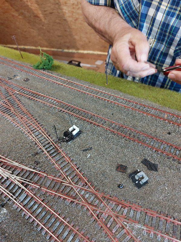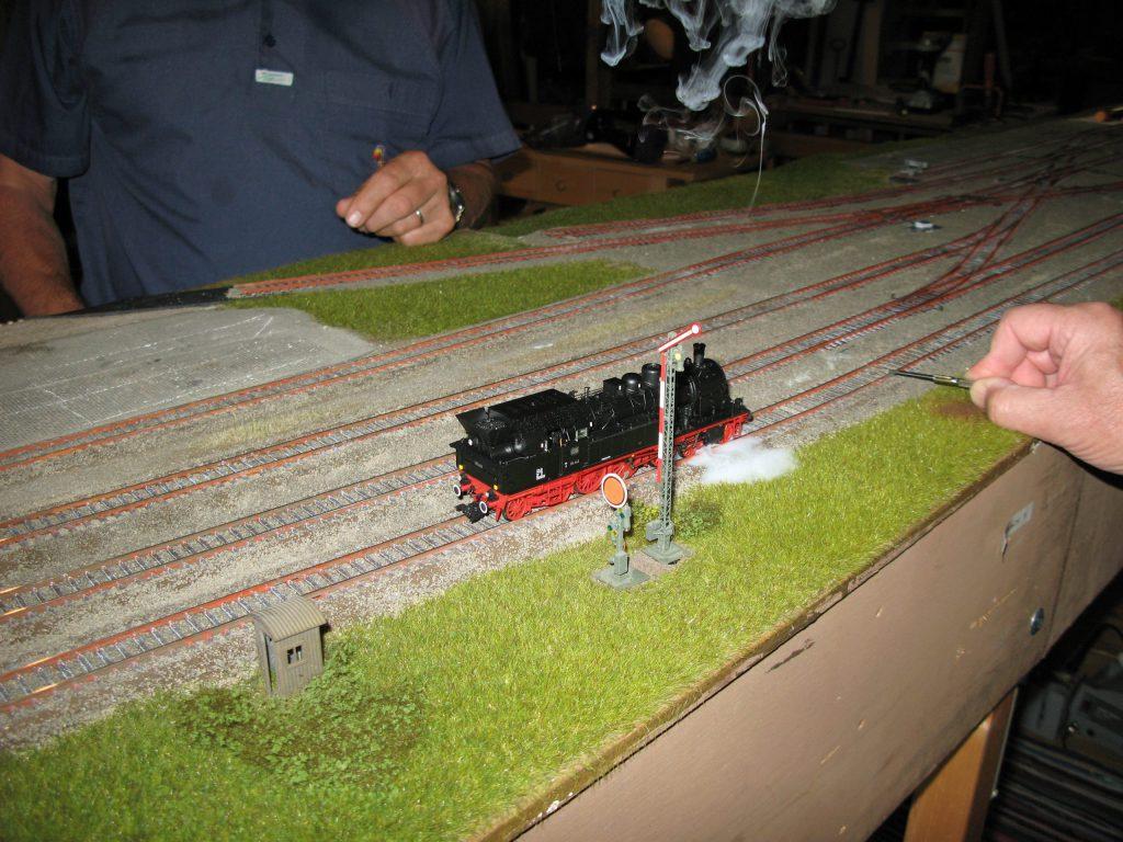 Arbeiten an der AC-Anlage. Geplant sind zusätzliche Rückmelder. Dazu muss aber ein Teil der Gleise demontiert werden und um Trennstellen einzubauen. Zusätzlich wurde auf de DC-Anlage ein Programiergleis eingebaut.