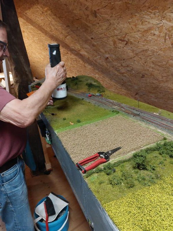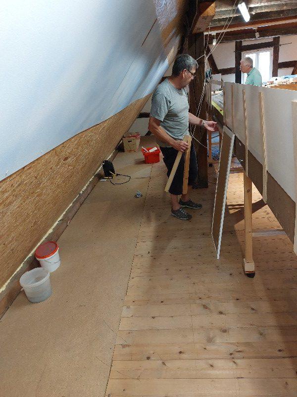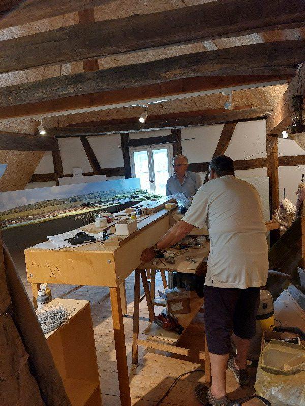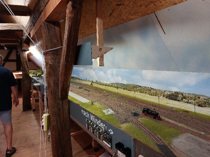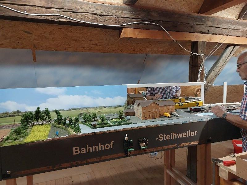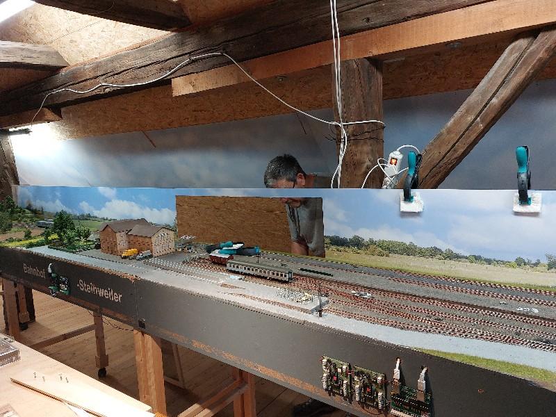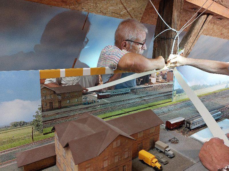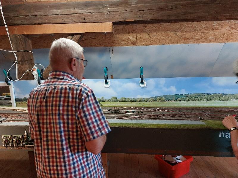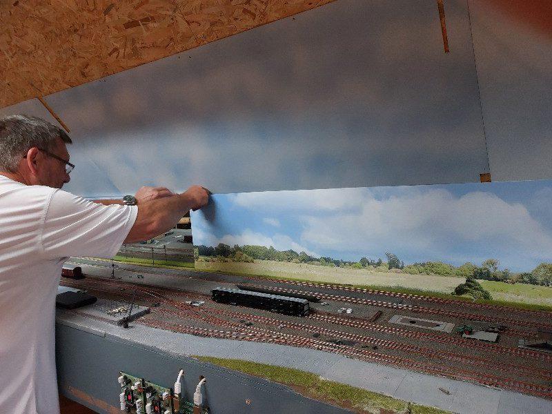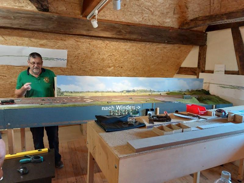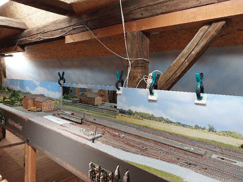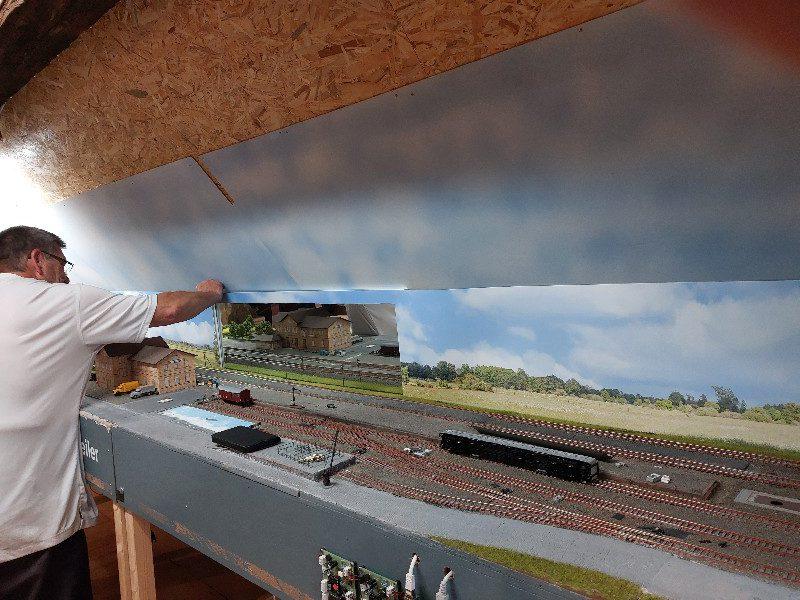 02.07.24 Der Hintergrund ist da und wird an den Modulen befestigt. Zusätzlich werden die vorhanden Platten als Himmel genutzt.
