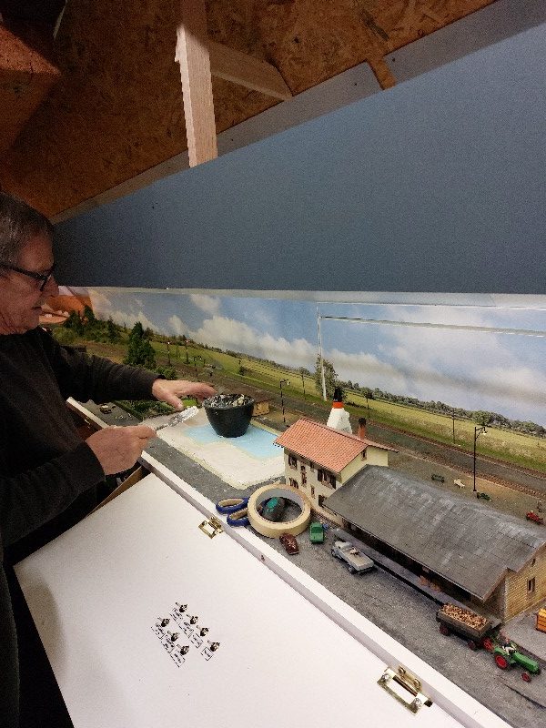 Die Grünflächen werden beflockt und die Weichenantriebe eingebaut und geprüft.
