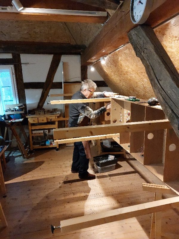 04.06.24 Arbeiten an der Inneneinrichtung des Stellwerks und am Schattenbahnhof