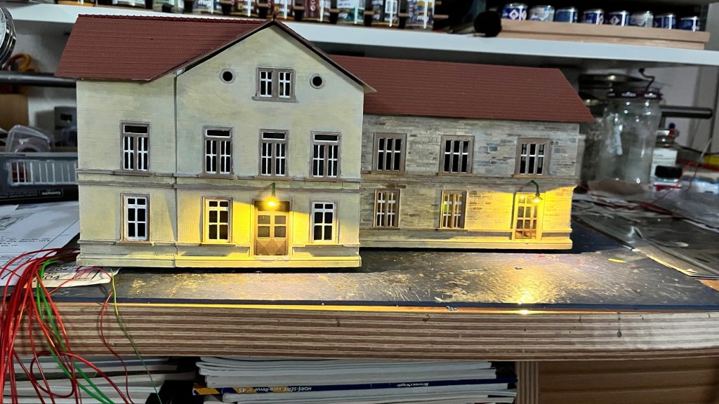 Dabei wurden nicht nur die Außenwände sondern auch die Innenwände mit Treppe modelliert. In Reviews wurde geklärt wie der Warteraum mit dem Kartenschalter früher ausgesehen hat. Auch das wurde modelliert auch wenn man diese Details nur schwer im Maßstab 1:87 erkennt.