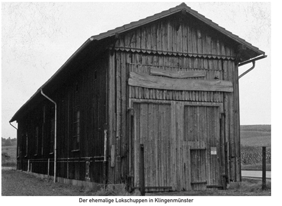 Am Bahnhof Rohrbach befinden sich heute zwei Durchgangsgleise Landau-Winden, Abzweigung und weitere Gleise sind alle auf Grund neuer Straße und Einkaufzentrum entfernt und der damalige Bahnhofbereich somit nicht mehr erkennbar. Die damalige Bahnstrecke führte in weitem Bogen südlich von Rohrbach in westliche Richtung gen Klingenmünster. Der damalige Bahnkörper ist als Baum- und Buschreihe erkennbar und nur über Wiesengelände erreichbar. Am Bahnkörper sind am ehesten Brückenfundamente über kleine Bäche zusehen. Weiter ging es Richtung Billigheim, wo die Wohnbebauung an/ über den ehemaligen Bahnkörper gewachsen ist, bzw. sich zum Radweg gewandelt hat. Der Bahnhof ist ein Wohngebäude, der Besitzer muss ein Bahnfreak sein: trotz mannshoher Umzäunung waren alte Signale erkennbar. So fuhren wir weiter an Gewerbebauten vorbei Richtung Ingenheim: auch hier das gleiche Bild: Wohn- und Straßen Bebauung haben die Bahnstrecke geschluckt, Bahnhof zu Wohnzwecken umgenutzt, ehemalige Nebengebäude verschwunden oder ursprüngliche Nutzung nicht mehr erkennbar. Diese Feststellung trifft auf alle Bahngebäude zu: sie sind im gleichen Stil aus warmem gelbem Sandstein gebaut und gut erhalten. Weiter ging es an der ehemaligen Hammerschmiede (Fritz will sich um Besichtigung und Vorführung kümmern) vorbei. In Klingen das gleiche Bild und so erreichten wir am Ortseingang von Klingenmünster den damaligen Lokschuppen, der durch seine Größe/ Länge beeindruckend ist.