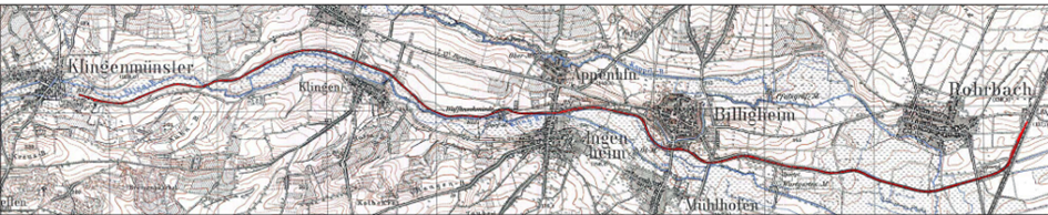 Der erste Bauabschnitt Bahnhof „Rohrbach-Steinweiler“ mit erforderlichen Wendekreisen ist weitgehend fertiggestellt, weshalb wir die Fortsetzung in Richtung „ Klingenmünster“ planen. Da die derzeitigen Platzverhältnisse nur eine begrenzte Zahl an Modulen für den Einbau hergeben, werden wir den Endpunkt der damaligen Strecke darstellen und sodann eine passable Verbindung zwischen beiden Bahnhöfen erstellen. Die Klingbachtalbahn ist im gleichlautenden Buch beschrieben.