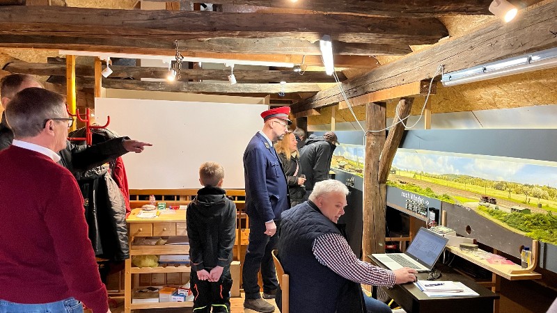 Das Museumsteam unterstützte mit Themenbezogenen Artefakten wie historischen Bahnuniformen. Ein aktiver Lokführer war auch zugegen.