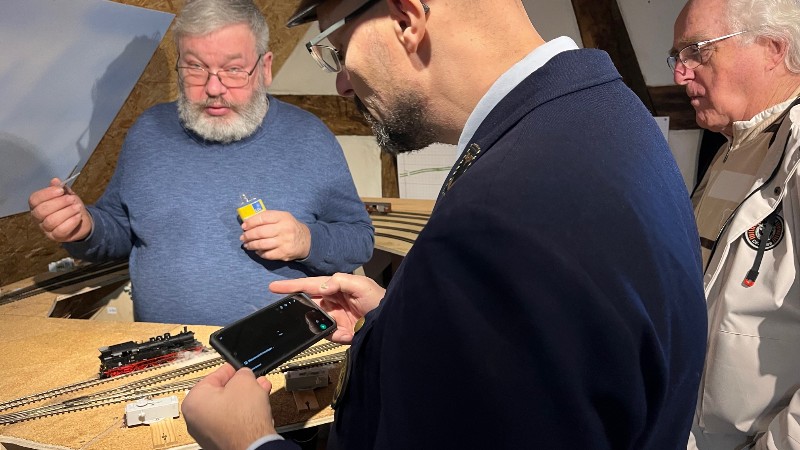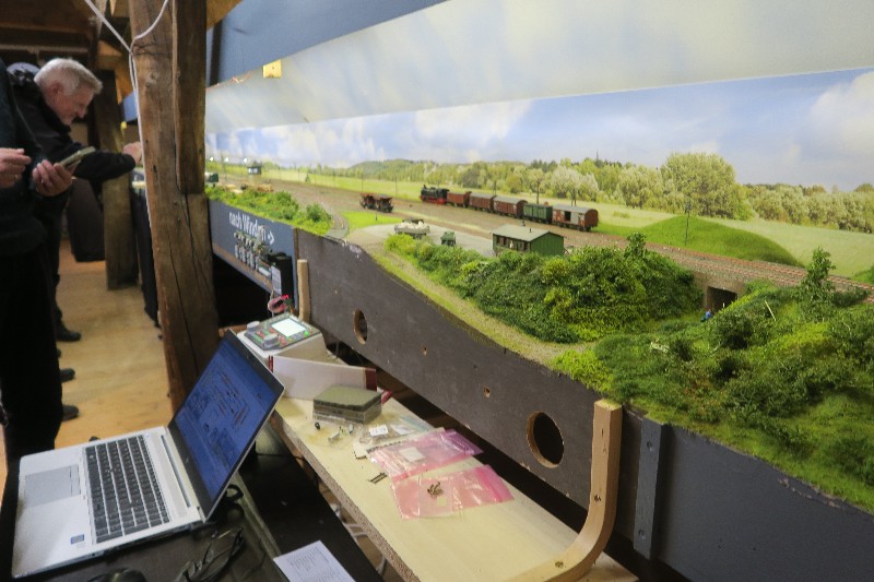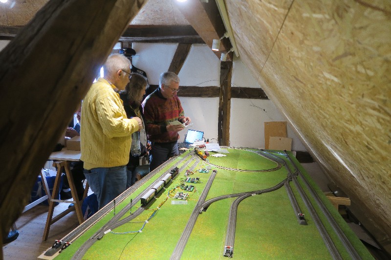 An einer weiteren Anlage wurde eine 3-Leiter Wechselstrom Anlage auf Basis Märklin C-Gleis und ein Kreis mit M-Gleis mit durchgehendem Mittelleiter, für die Loks mit Skischleifer, vorgestellt. Neben dieser Anlage befindet sich unser Test- und Programmiergleis.